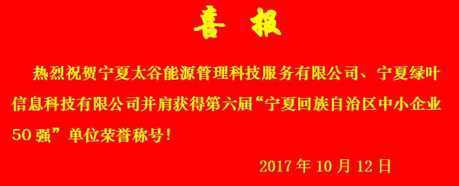 【喜報(bào)】熱烈祝賀我公司榮獲2017年“寧夏回族自治區(qū)中小企業(yè)50強(qiáng)”單位榮譽(yù)稱號